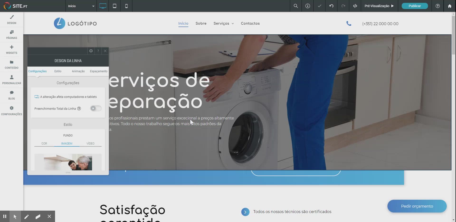 É fácil criar páginas, alterar textos e imagens. Exporto o seu portfólio e serviços e ainda cria bonitos formulários, basta arrastar e editar.